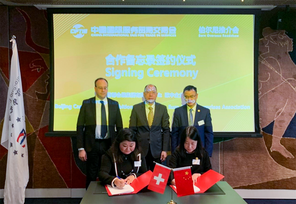 作为本年度第15场面向境外国家开展的推介活动,本场推介会由北京市国际服务贸易事务中心主办,首都会展集团承办,欧中企业联合会协办,并得到了中国银行的大力支持,来自瑞士数字网络平台、奥尔格拉姆、MingCore Networks、欧中创新中心、艾普维真(AlpVision)等企业的60余位嘉宾出席。各与会嘉宾在现场热烈交流,畅谈合作;首都会展集团与欧中企业联合会签署了服贸会合作备忘录,就未来服贸会相关工作开展合作。