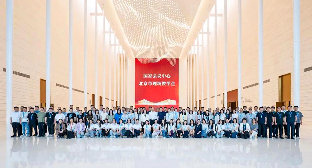 2024年8月,国家会议中心入选首批北京市现场教学点,经过数月的筹备,在庆祝中国共产党成立104周年之际,国家会议中心现场教学点正式迎来“首秀”,全国国有企业团干部示范进修班(第1期)101名学员走进场馆开展参观学习。观众们通过场景还原+案例解析+互动体验的立体化教学模式,深度体验了“国家会客厅”发展的历程与实践成就。这座承载着国家级主场外交重任的“国家会客厅”,自此增添“城市课堂”新名片,向公众敞开感知大国交往实践的大门。